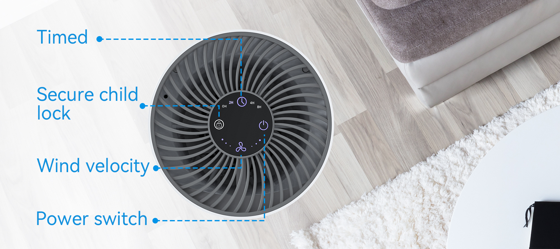 - 360° All-Around Purification: The air intake design ensures thorough and complete purification of the room's air.