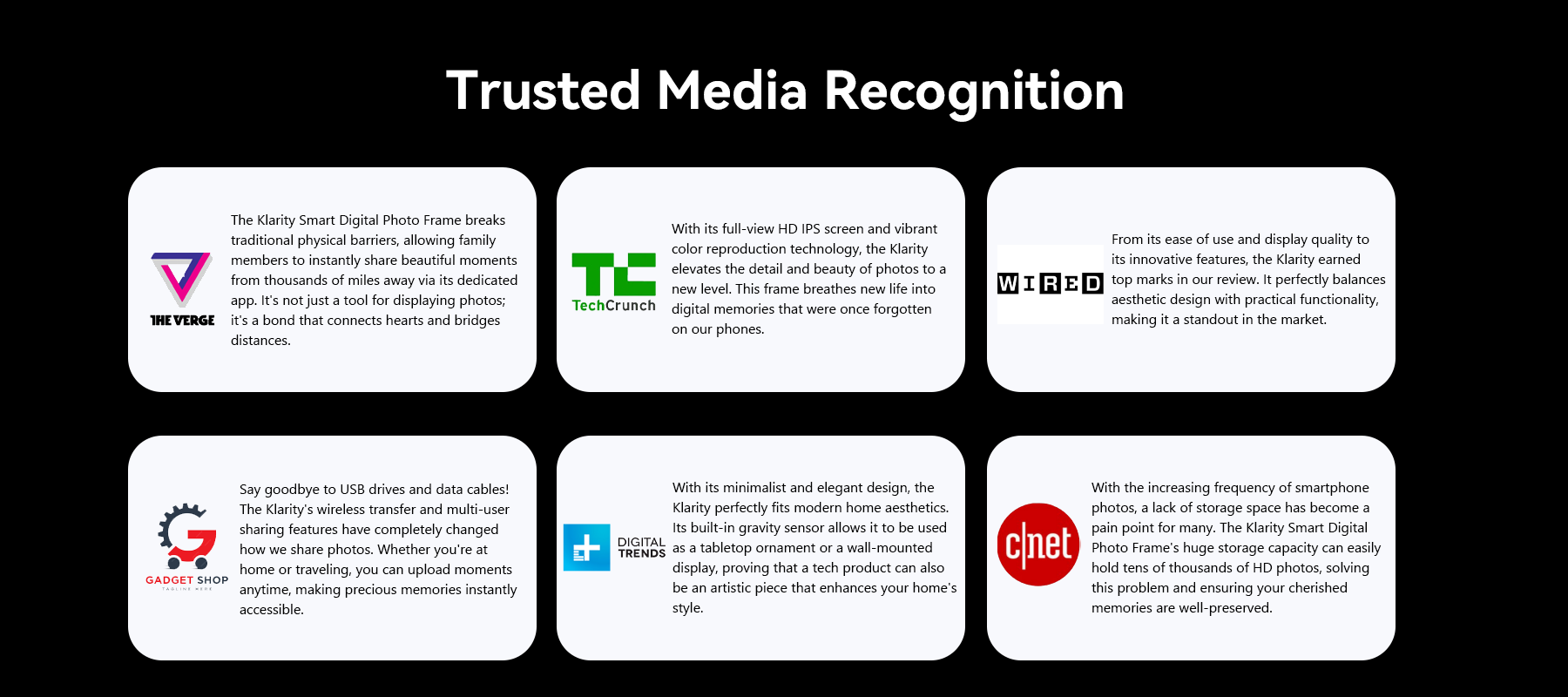 Klarity Smart Digital Photo Frame – Where memories shine in HD and sharing feels effortless.