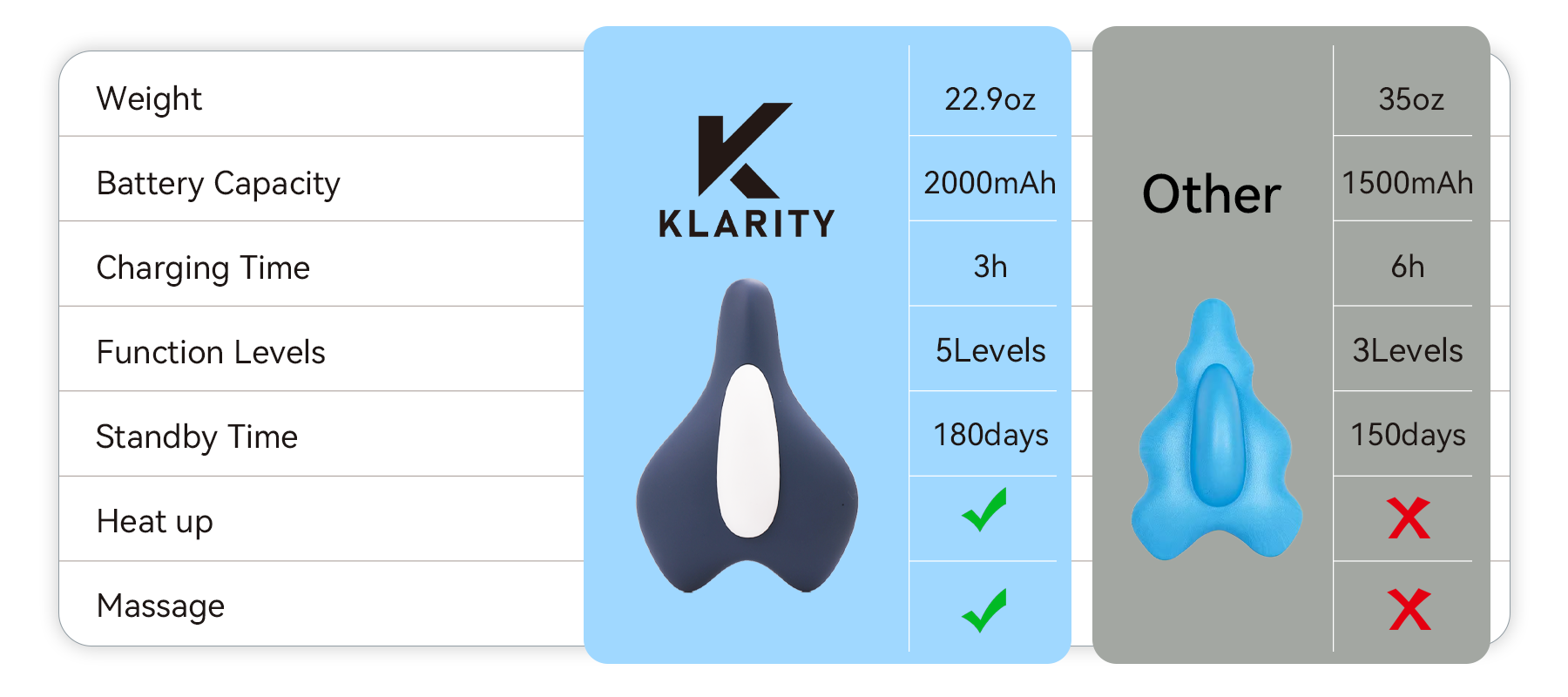 The Klarity trainer is equipped with a 2000mAh large-capacity battery, offering extended battery life to support long training sessions, ensuring a stable experience every time you use it. Whether you're doing regular training or high-intensity recovery, the 2000mAh battery provides lasting power, allowing you to complete each session with ease and efficiency.